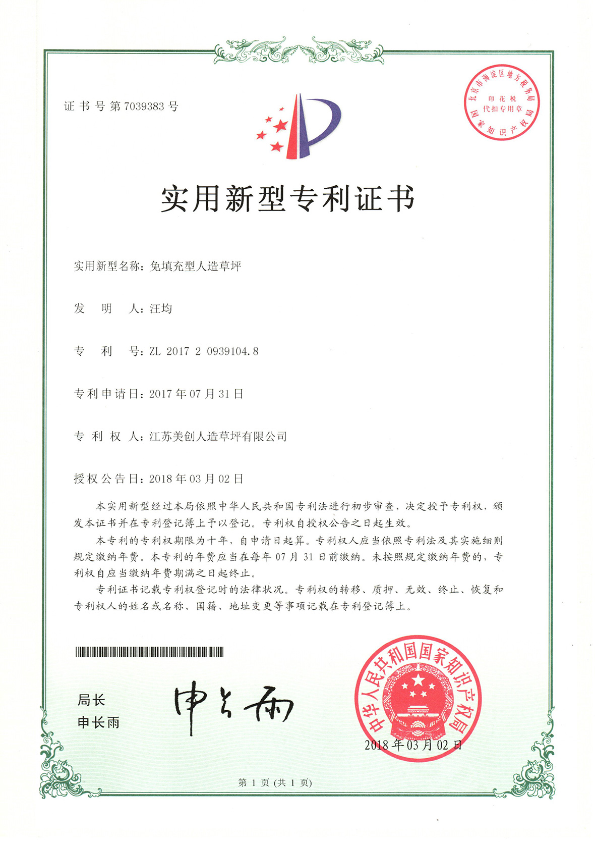 免填充型草坪
